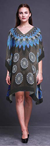 Phagun Grigio Tribale Africano Short Caftan Midi Dress Beach Swimwear Cover up Womens Kaftan-XL-3X