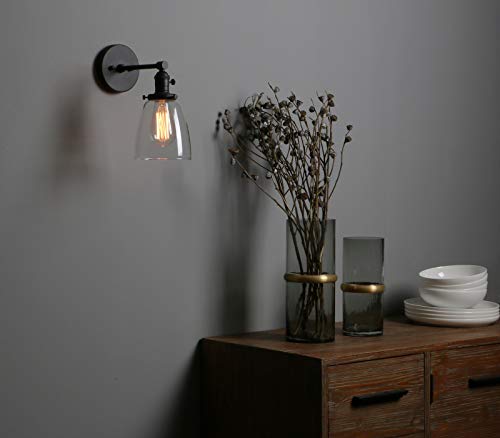Phansthy - Lampada da parete con campane in vetro trasparente per interni, stile vintage Schwarz Farbe