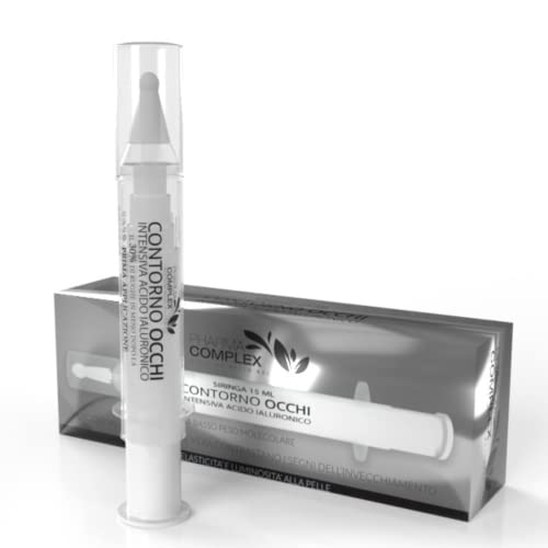 NUOVA FORMULA: la crema PHARMA COMPLEX a BASSO CONTENUTO MOLECOLARE penetra facilmente nell'epidermide stimolando un'intensiva produzione di acido ialuronico puro. Trattamento lifting istantaneo viso, il siero occhi riduce subito le rughe del 30%.