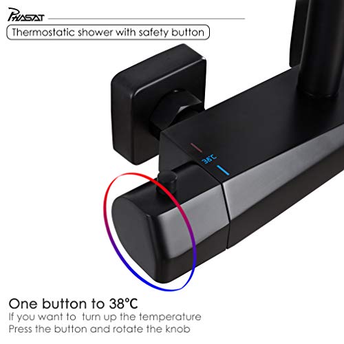 PHASAT Rubinetto Doccia Termostatico,Colonna Sistema Termostatico Doccia con Soffione Doccia e Doccetta,Barra Regolabile,Nero,SB07