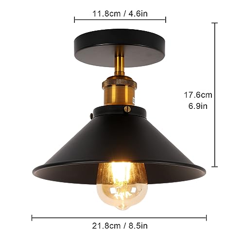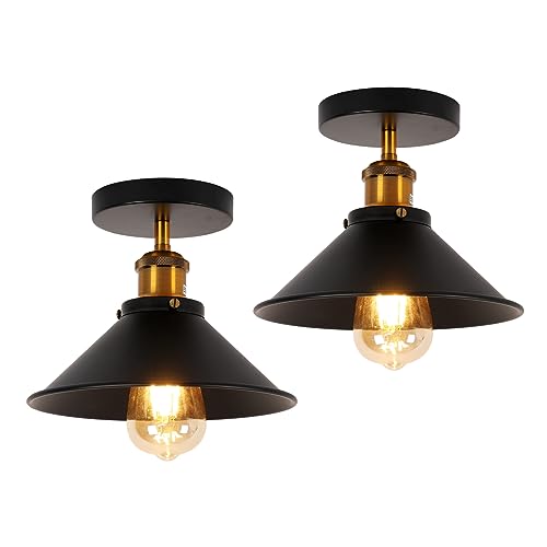 Pheashine 2 Pezzi Vintage Plafoniera Soffitto Industrial, Forma di Ombrello, E27 Plafoniera Nera e Metallo, Plafoniera da Incasso Paralume per Cucina, Corridoio, Bar, Ristorante