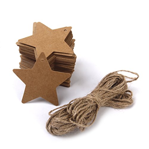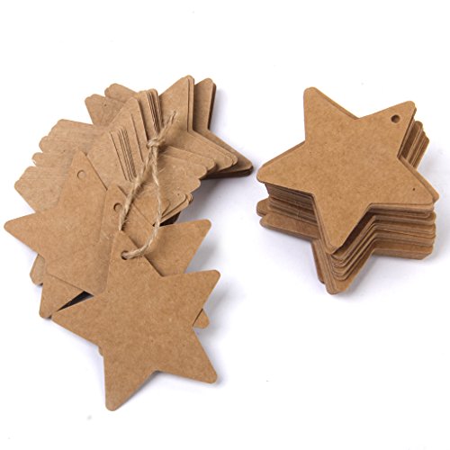 Phenovo 100pz Carta Kraft Forma Di Pentagramma Etichetta Personalizzata Decoro Regalo Feste, Marrone