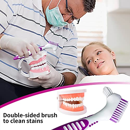 【PULIZIA】La spazzola di pulizia per dentiere è progettata con testine grandi e piccole per rimuovere le particelle grandi dalle dentiere e testine piccole per pulire i residui di cibo tra le fessure,proteggendo efficacemente le dentiere.