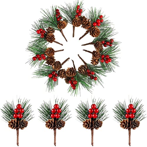PHIEZC 10 rami di bacche artificiali, piccoli rami di abete con bacche e pigne di abete, rami di bacche, per Natale, ghirlanda e ghirlande, decorazioni fai da te