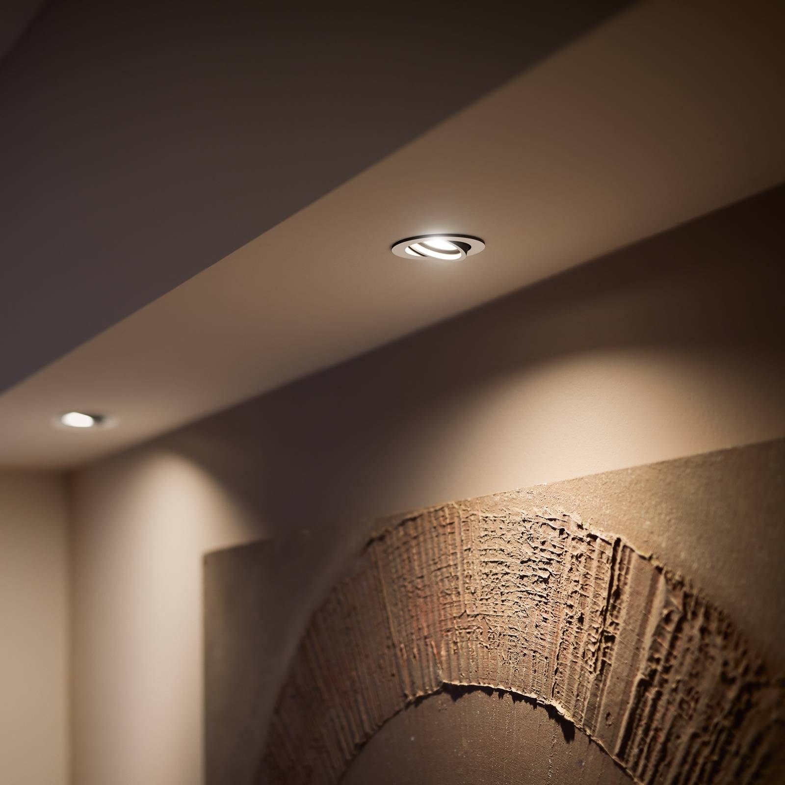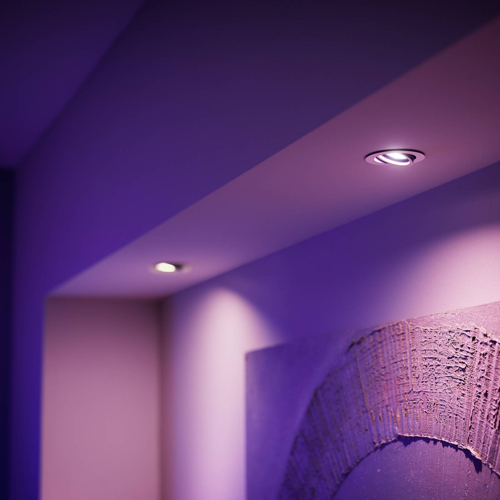 Faretto rotondo da incasso a LED Centura, Philips Hue White e Color Ambiance - controllabile via Bluetooth e Zigbee Centura è all'avanguardia sia in termini di aspetto che di tecnologia. Lo spot LED per l'installazione a soffitto è composto da un telaio rotondo in plastica e da una testa del faretto girevole. Quest'ultimo ha una presa GU10, che è dotata di una lampada Hue White e Color Ambiance. Le opzioni di controllo e di illuminazione della lampada sono il punto forte di Centura. Lo spot può essere azionato via Bluetooth con l'app Hue Bluetooth sul tablet o sullo smartphone - senza altri dispositivi. Poiché è possibile anche la comunicazione via ZigBee, Centura può essere integrato in qualsiasi sistema di casa intelligente basato su ZigBee tramite bridge e router. Se Philips Hue è selezionato per questo, l'interruttore dimmer Hue è disponibile per il funzionamento locale o l'app Hue per il controllo remoto tramite smartphone. Centura può anche essere integrato in Google Home, Amazon Alexa o Apple HomeKit per il controllo vocale. Con 16 milioni di colori e tonalità di bianco da 2.000 a 6.500 Kelvin, Centura soddisfa ogni desiderio e ogni situazione. Le impostazioni possono essere selezionate secondo ricette di luce predefinite, composte liberamente e, con l'integrazione ZigBee, impostate secondo la routine quotidiana o la presenza, per esempio. Dati tecnici: - Temperatura di colore della luce bianca regolabile dal bianco caldo (2.000 K) alla luce del giorno (6.500 K) - 16 milioni di colori - Raggio d'azione Bluetooth in casa circa 10 m Caratteristiche speciali / compatibilità: - Controllabile con l'interruttore dimmer Hue (vedi accessori). - Controllabile con l'app Hue abbinata e l'app Hue Bluetooth - compatibile con il sistema Philips Hue esistente e altri sistemi basati su ZigBee come quelli di Innogy, Bosch, Telekom (Magenta) e Busch-Jäger - Controllo vocale possibile con Amazon Alexa, Apple HomeKit (Siri) e Google Assistant - Dimmerabile tramite app, comando v