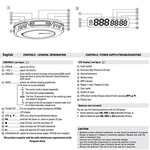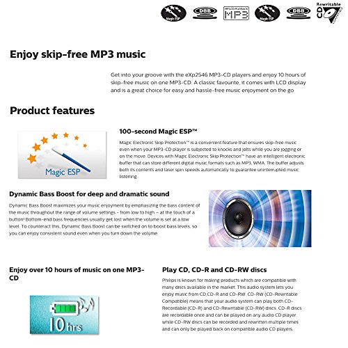 Dotazione: Philips EXP2546/12 Lettore CD portatile (Dynamic Bass Boost, MP3-CD, Magic ESP, 10 ore di riproduzione, display LCD), nero