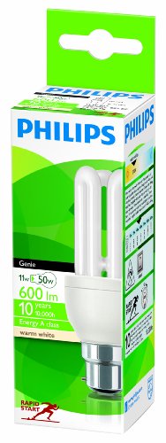 PHILIPS 11w Genie - lampadine a Risparmio energetico, BC/B22/Bayonet cap (Estraibile a baionetta), 10 Anni di Durata