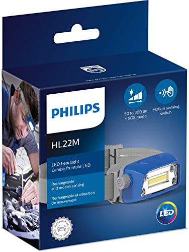 Philips HL22M Lampade da lavoro LED, lampada frontale LED ricaricabile con rilevatore di movimento, 300 lumen