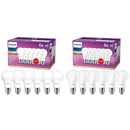 PHILIPS Lampadine Led, Warm White Goccia, E27, 13W Equivalenti A 100W, 2700K, 6 Pezzi & Lampadina LED Goccia, 6 Pezzi, Equivalente a 60W, Attacco E27, Luce Bianca Calda, non Dimmerabile