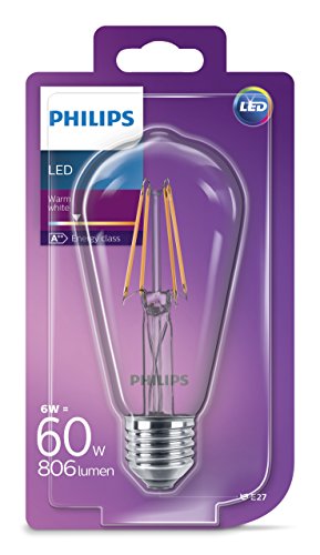 Philips LEDFILST6460 Lampadina LED Classic Edison, Vetro, 6W Equivalenti a 60W, E27, Trasparente