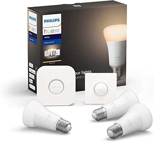 Philips Lighting Hue Kit con 3 Lampadine Attacco, 1 Bridge Hue Controllo, 1 Telecomando Hue Smart Button + Hue Smart Button Telecomando per Controllo delle Luci Hue, con Bluetooth