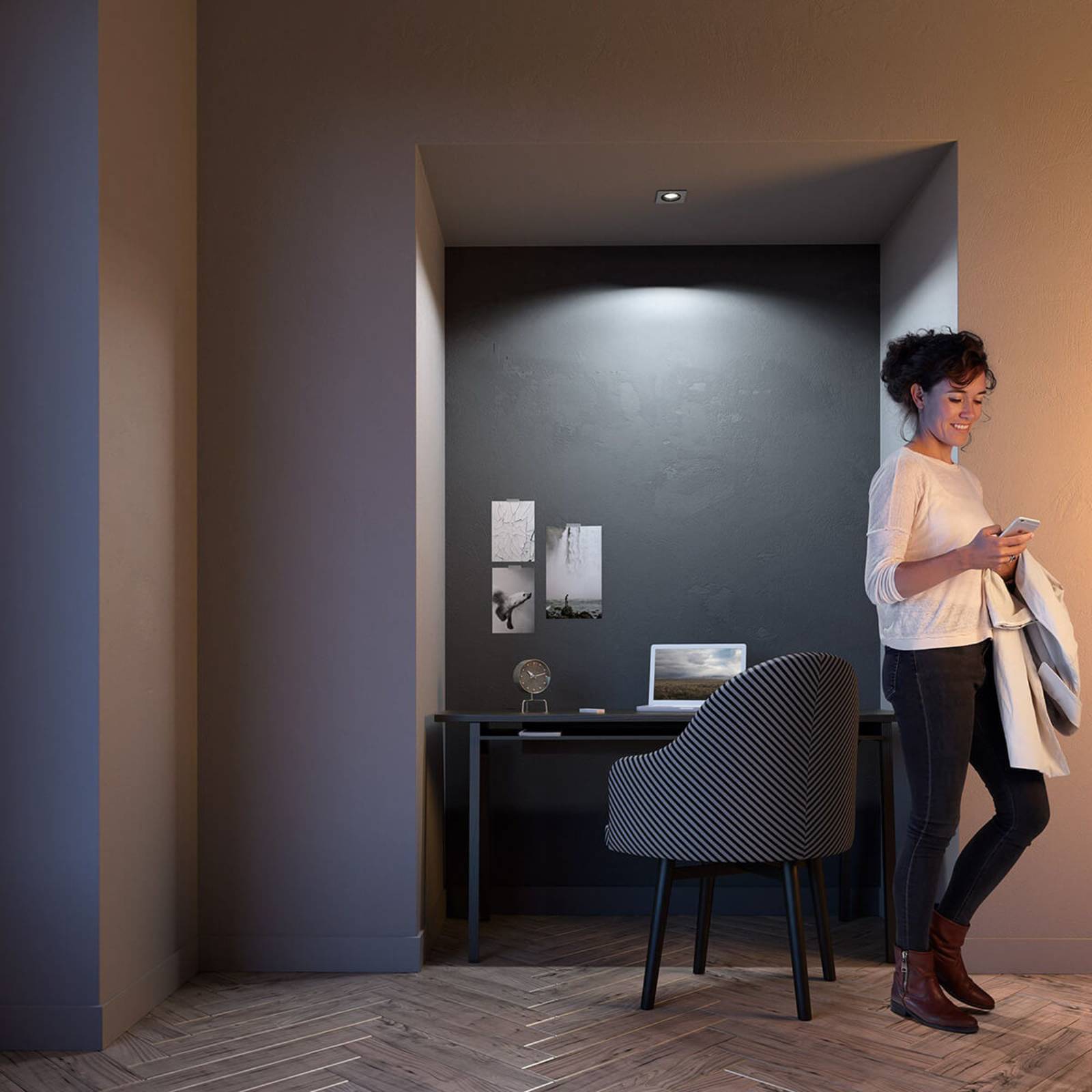 Downlight angolare color alluminio Philips Hue White Ambiance Milliskin con dimmer Il downlight quadrato Philips Hue Milliskin in tecnologia White Ambiance trova posto in ogni genere di ambiente ed emette luce bianca di qualsiasi tonalità. Viene fornito con un dimmer alimentato a batteria. Il dimmer si monta dove si vuole, anche sulla parete, senza bisogno di un cablaggio. Funziona come un telecomando e può controllare fino a 10 lampade. Premendo ripetutamente l'interruttore si varia fra quattro scene di luce e si aumenta o diminuisce l'intensità. Con Milliskin l'illuminazione si adatta a qualsiasi contesto, sia in termini di intensità che di colore di luce. L'illuminazione diventa ancora più flessibile utilizzando la app Hue. A tale scopo si collega la lampada a un bridge Hue (vedi accessori) e si scarica la app Hue (disponibile per Android e iOS). A questo punto la lampada si gestisce con smartphone e tablet. Inoltre diventa possibile utilizzare un assistente vocale compatibile. Prerogative / compatibilità - Comando con dimmswitch Hue (incluso) - Dimmerabile (con app o interruttore dimmer) - Compatibile con sistemi Philips Hue già installati - Comandi con corrispondente app Hue - Comando vocale con Amazon Alexa, Apple HomeKit (Siri) e Google Assistant - Compatibile con sistemi basati su ZigBee come ad esempio Innogy, Bosch, Magenta (Telekom) e Busch-Jäger Nota: per il controllo intelligente dell'illuminazione è necessaria una gateway come ad esempio il Philips Hue Bridge (vedi accessori).