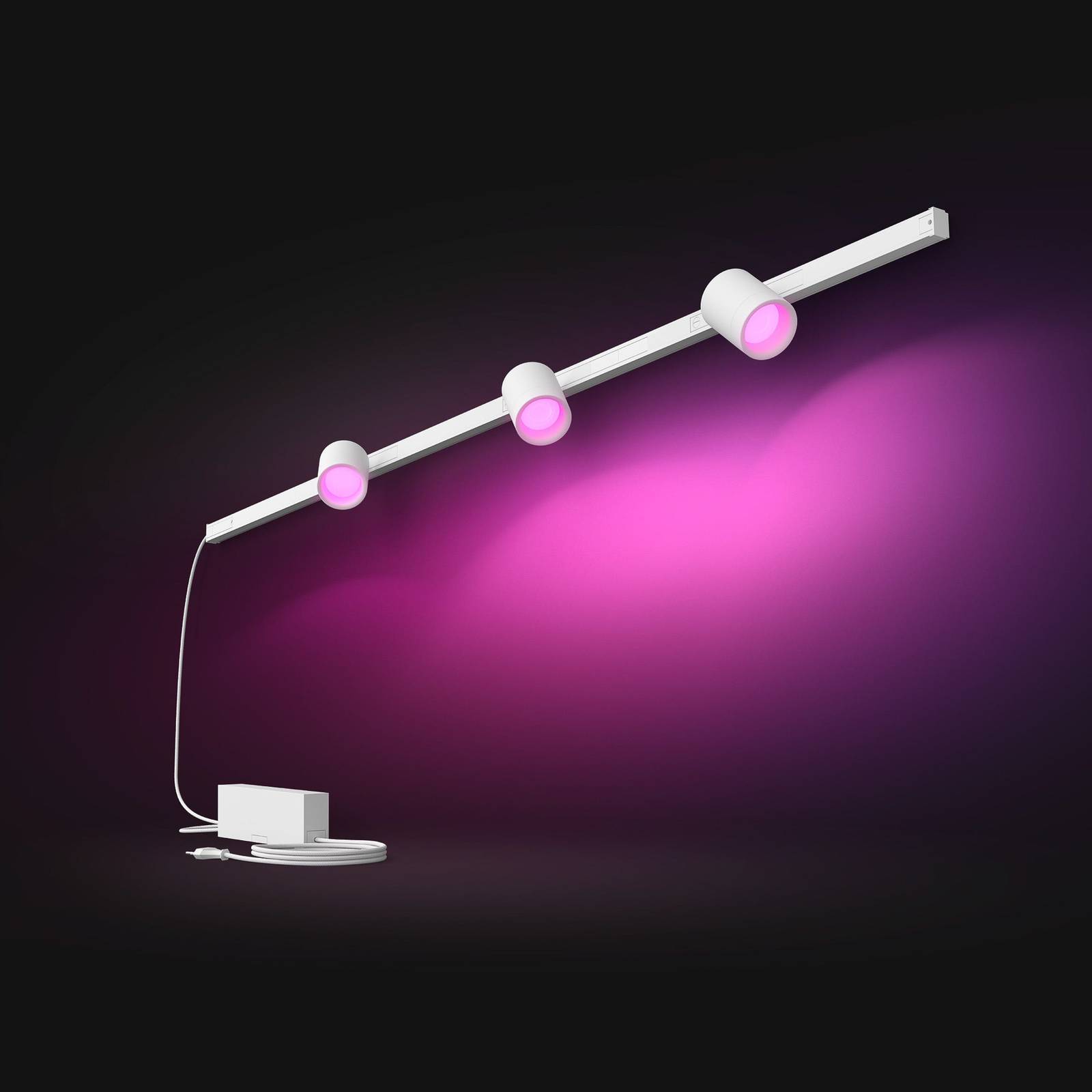 Illuminazione a binario con alimentazione tramite presa - controllabile in modo intelligente Sistema Perifo completo con tre spot LED Progettato per l'uso a parete, questo set completo del sistema a binario Perifo di Philips Hue offre tutti i componenti necessari per un'esperienza di illuminazione di grande effetto. Il set comprende tre spot LED dimmerabili, che offrono luce colorata e bianca a luminosità regolabile e possono essere posizionati a piacere con i loro adattatori. Inoltre, sono presenti binari coordinati, un alimentatore esterno, nonché cavi e spine. Quest'ultimo consente l'alimentazione tramite qualsiasi presa in casa. La composizione può essere ampliata in qualsiasi momento con ulteriori componenti Perifo. - controllabile tramite Bluetooth e l'app Hue abbinata - dimmerabile tramite l'app o un interruttore dimmer Philips Hue abbinato (vedere accessori) - integrabile in un sistema smart home Philips Hue esistente (è necessa