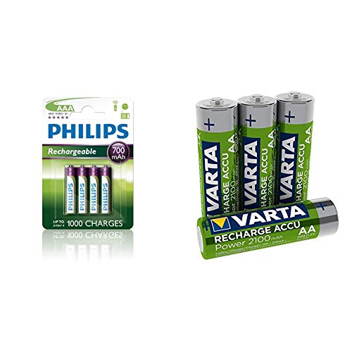PHILIPS R03B4A70/10 Rechargeables Batteria AAA, 700 mAh, Confezione da 4 Pezzi & Varta ACCU Batteria Ricaricabile, AA Stilo 2100 mAh, Confezione da 4 Pezzi