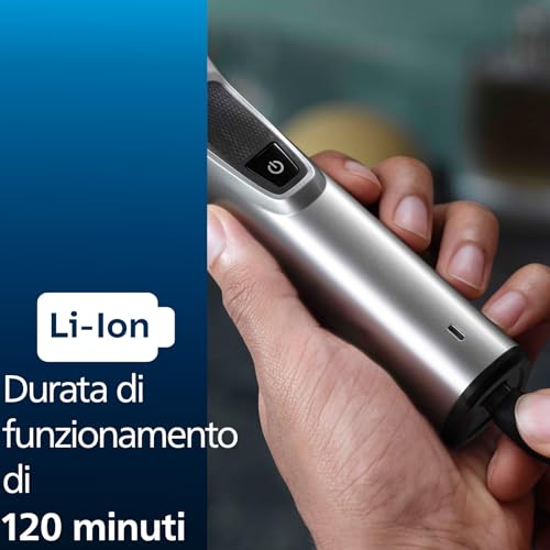Con 19 accessori per viso, capelli e corpo, è ideale come regolabarba, bodygroom, regolacapelli e rifinitore per naso/orecchie/sopracciglia per uomo, 11 impostazioni di lunghezza (0,5-16 mm).