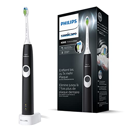 Philips Sonicare ProtectiveClean 4300 - Spazzolino elettrico HX6800/28 con programma di pulizia, 2 intensità, controllo pressione e timer, colore: Nero