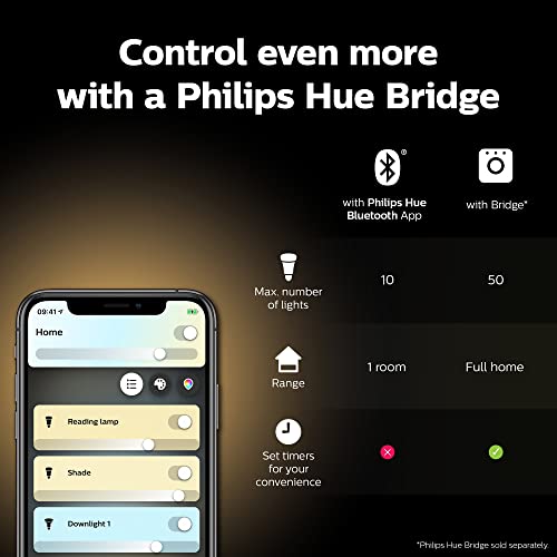 Ecco le possibilità che il sistema Hue completo offre: controllo fino a 50 luci, controllo intelligente anche fuori casa, luce per addormentarsi, per il risveglio e molto altro