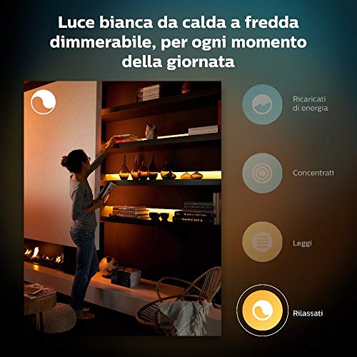 PHILIPS Hue White and Color Lightstrip, Kit Base Striscia LED Smart da 2 m + Estensione da 1 m, con Bluetooth, 1600 Lumen, Luce da Calda a Fredda e Colorata