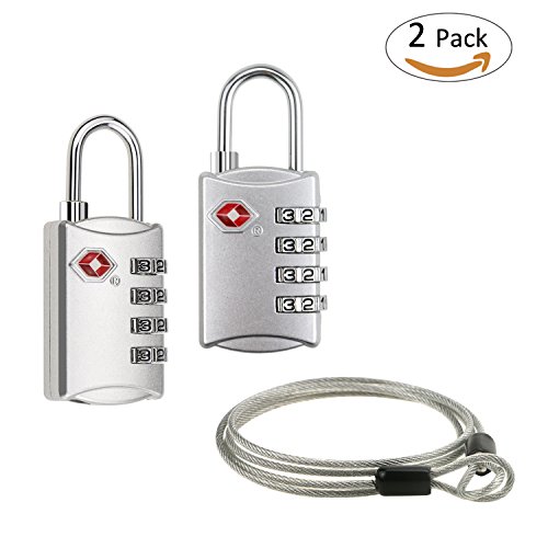 Philonext 2 pacchetti di blocco per bagagli TSA, lucchetti combinati in argento a 3 cifre Blocchi di password approvati da viaggio con cavi di blocco per bagagli per valigie e zaini