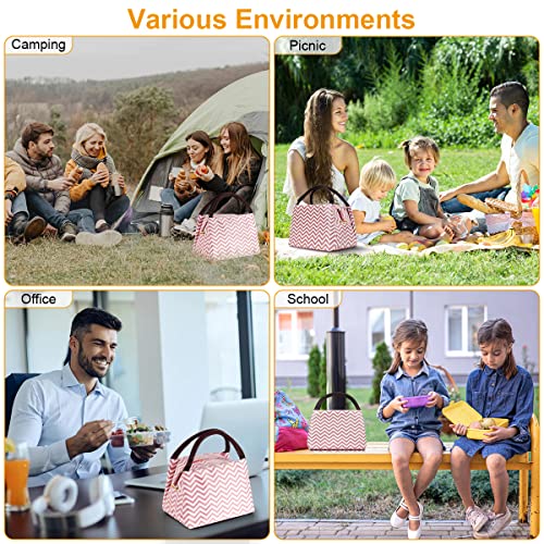 PHILORN Borsetta Porta Pranzo Termica Pranzo Borse Borsa Alimenti Lunchbox per Scuola e Ufficio (Medium, Rosa con Onde)