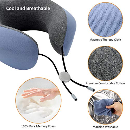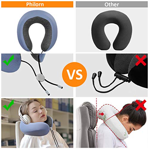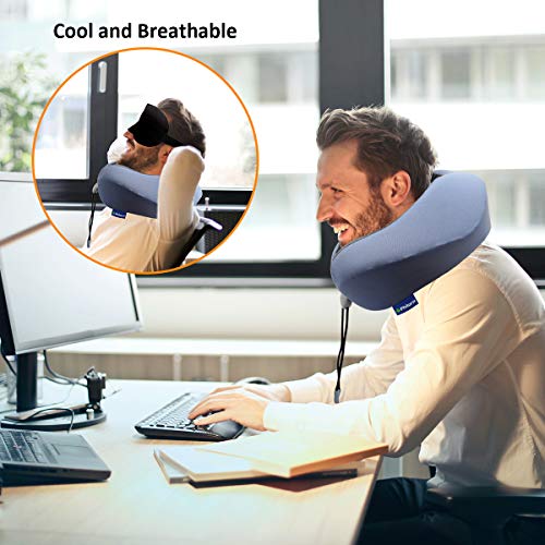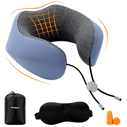 Philorn Cuscino Per Collo In Memory Foam, Cuscino Da Viaggio Con Fodera Lavabile, Maschere Per Gli Occhi, Tappi Per Le Orecchie E Borsa Per Conservazione, Per Naap In Aereo Auto Treno Ufficio (Blu)