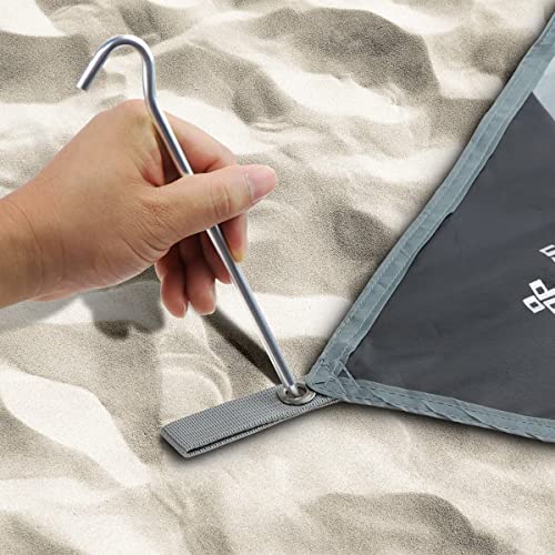 Doppia Stabilità: È possibile utilizzare le 4 tasche d'angolo pesate con sabbia e rocce oi 4 puntali di ancoraggio in alluminio di alta qualità per fissare saldamente la coperta per evitare che il tappetino da spiaggia toglie dal vento. Le tasche possono essere utilizzate in alternativa per la memorizzazione di oggetti come il telefono, occhiali da sole ecc.