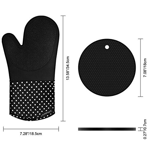 PHILORN Guanto in Silicone Resistente al Calore Impermeabile Guanti da Forno Antiscivolo con 2 tovagliette in Manicotti Lunghi in Cotone BBQ Cottura Guanto (Tutto nero)