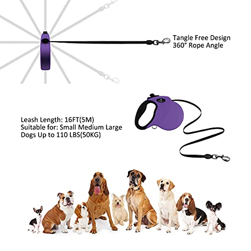Philorn Guinzaglio Retrattile per Cani, 5M Guinzaglio Estensibile Senza Grovigli, Bloccare & Rilasciare con un Pulsante, Riflettente, Manico Antiscivolo per Cani Media/Grande