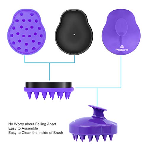 PHILORN Spazzola per shampoo massaggiatore per cuoio capelluto per capelli, doccia, pettine in silicone morbido per uomo, donna, bambino o animale domestico (Viola)