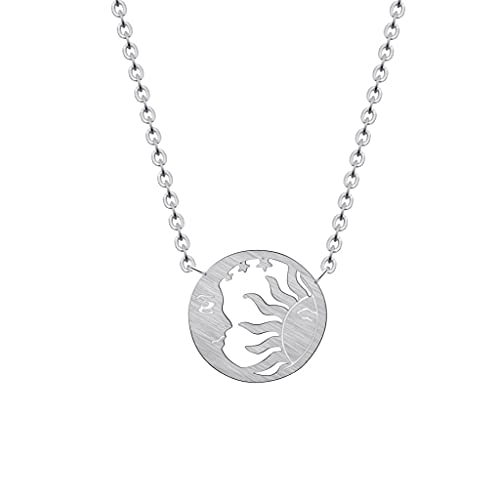 PHILSP Collana con ciondolo a forma di sole luna, in acciaio inox, con ciondolo a forma di sole e luna, per donna, gioielli alla moda, regalo di compleanno, argento