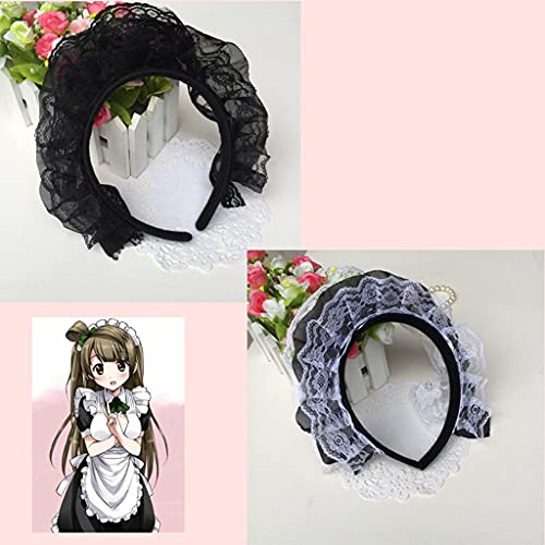 PHILSP Copricapo Arruffato Fasce di Pizzo per Le Donne Fascia di Pizzo Multistrato Carino novità Copricapo Copricapo da Donna Cameriera Cosplay Puntelli per Feste Nero + Bianco