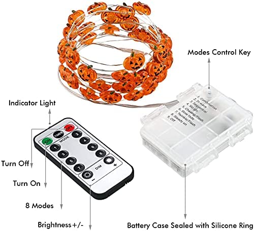Luci LED a Batteria: questa luce fata zucca è alimentata da 3AA batterie (non incluse), a basso consumo energetico, facile da usare, luminosa e sicura. Nessuna spina o alimentazione richiesta, può essere utilizzato sempre e ovunque. Dotato di un vano batteria impermeabile, adatto per uso esterno. Per le persone a cui piace la decorazione della tenda all'aperto, è molto comodo da trasportare! Nota: la custodia della batteria è impermeabile solo IP44, si prega di tenerla lontano da forti piogge.