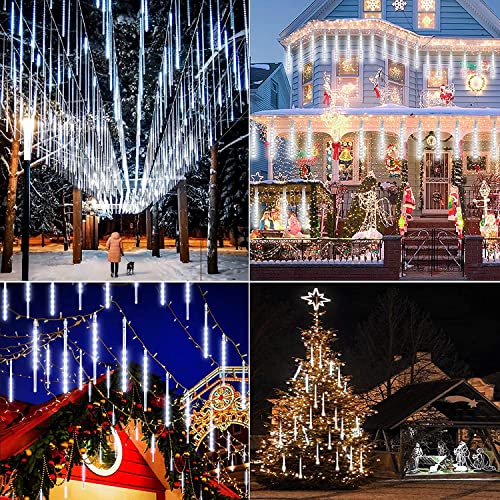 Estendibile Luci di Pioggia che Cadono: sono dotate di connettori maschio e femmina sicuri per una facile connessione e un uso sicuro. Connessione end-to-end, è possibile collegare fino a 3 stringhe. Puoi organizzare in modo flessibile queste luci decorative di Natale per esterni di Natale per espandere o ridurre l'area della decorazione. Abbastanza a lungo per supportare scene di decorazione festiva. Regalo perfetto per parenti e amici, ottimo ornamento per attirare gli occhi dei vicini.