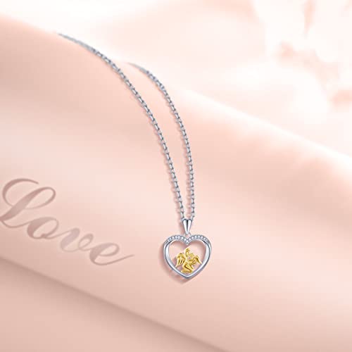 PHNIBIRD Collana Madre Bambino Collana Mamma Donna Argento 925 Con Pendente Cuore Collana Angelo Custode Regali per Madre Figlia Bambino