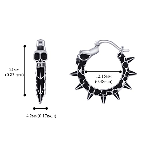 PHNIBIRD Orecchini Teschio Neri Orecchini Argento 925 Con Teschio e Rivetti Unisex Orecchini Uomo Donna 16mm