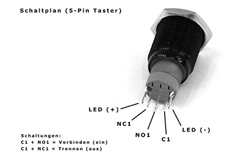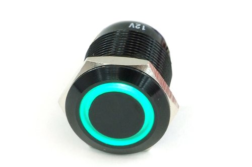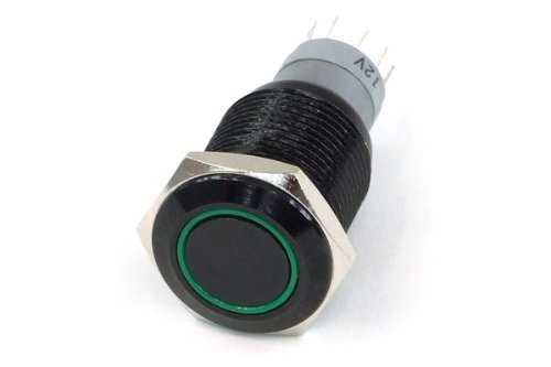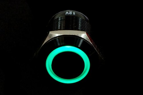 Phobya Push-Button Vandalism-Proof/Bell Push 16mm Alu Black, Green Ring Lighting 5pin