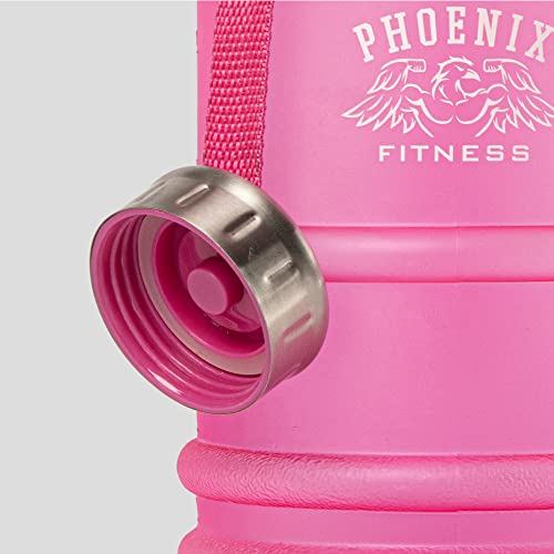 Phoenix Fitness RY961 Bottiglia Di Acqua Per Bevande Con Tappo a Vite in Acciaio Con Cinturino, Bottiglia Di Idratazione, 2L, Rosa