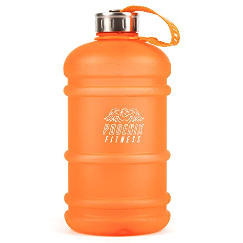 Phoenix Fitness RY963 Bottiglia Di Acqua per Bevande con Tappo a Vite in Acciaio con Cinturino, Bottiglia Di Idratazione, 2L, Arancia