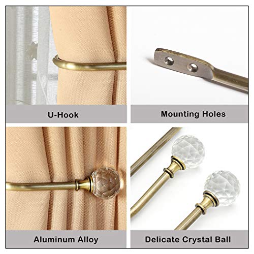PHOEWON Fermacravatta per tende in metallo acrilico a forma di U, ganci per tende da parete, confezione da 2 (bronzo)