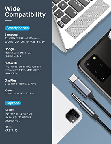 [Ampia compatibilità]Tipo C a 3,5mm Headphone Adapter Audio Car Stereo Compatibile con la maggior parte dei dispositivi di Classe C: Samsung Galaxy A53/A33/S23/S22/S21/S20/FE Ultra, Nota 20, Google Pixel 6/6/5/4/4XL/3/3XL/22XL, Huawei Mate40/30/20/P50/P30/P20, Xiaomi Mix2/Mix4/MiNote3/6/8/8SE/9/9SE/10/10 Ultra/11 Pro/11 Ultra, Mini 6, ecc.(Se non siete sicuri circa la compatibilità del modello, vi preghiamo di contattarci.)