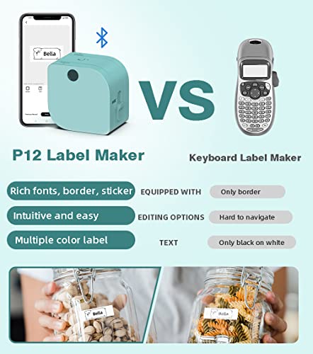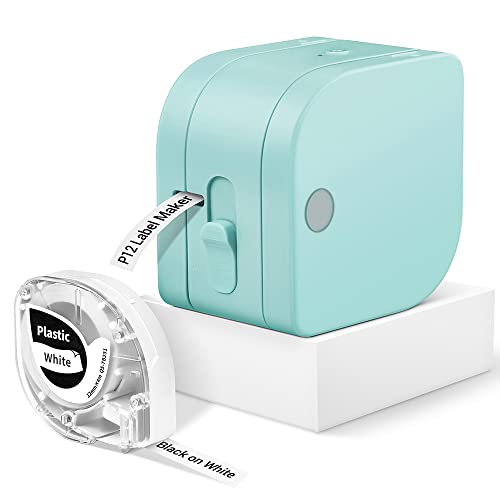 Phomemo P12 Label Maker Machine with Tape, Label Maker with Different Fonts for Home & Office Organization, with 1 Pack 0.47in Label Tape Bluetooth Label Maker Support Multiple-Material Labels,