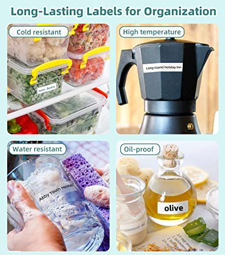 Supporta etichette realizzate con diversi materiali - La stampante per etichette Phomemo P12 può stampare non solo etichette di carta e plastica, ma anche etichette a trasferimento termico in più di 18 colori per interni ed esterni. Sono supportati anche materiali speciali come etichette in tessuto. Questa stampante per etichette con nastro adesivo è perfetta per la vendita al dettaglio e la casa.