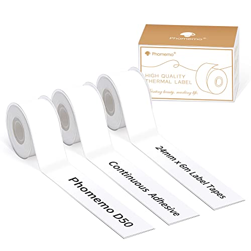 Phomemo D50 Nastro termico continuo da 24 mm, 3 rotoli di autoadesivo continuo, 0,94" X 236 1/8" (24 mm X 6 m), adatto per l'organizzazione della casa, l'ufficio, l'archiviazione, la scuola, il regalo