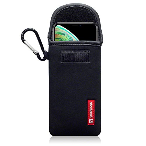 Phone XS / iPhone X Custodia, Shocksock Neoprene Custodia Sacchetto Manicotto con Carabiner per iPhone XS / iPhone X Custodia, Colore: Nero