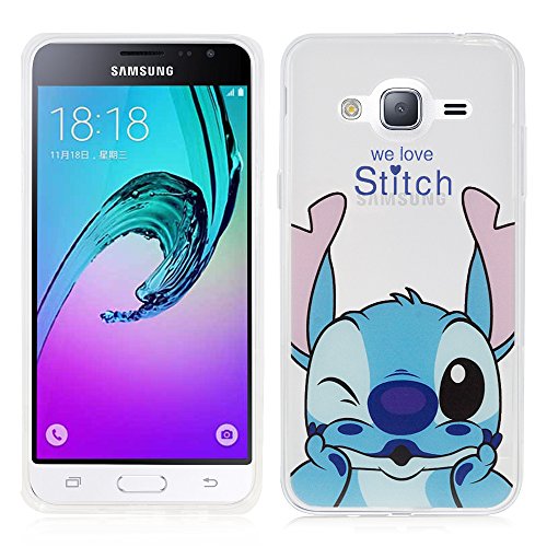 HCN PHONE Samsung Galaxy J3 (2016) Custodia Guscio di Silicone TPU Trasparente Ultra-Sottile Disegno Animato graziosa per Samsung Galaxy J3 (2016) - Stitch
