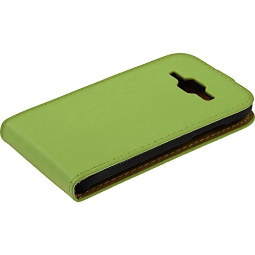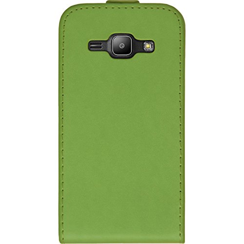 PhoneNatic Copertura di Cuoio Artificiale Compatibile con Samsung Galaxy J1 (2015 - J100) - Flip-Case Verde - Cover + Pellicola Protettiva