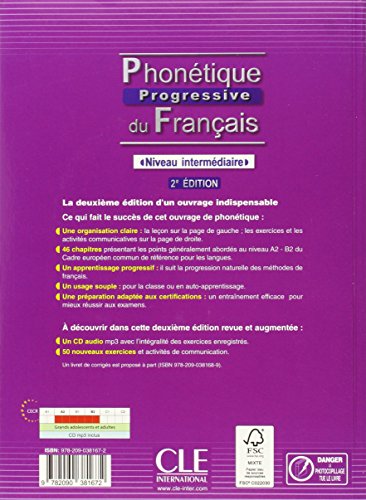 Phonetique Progressive du Francais. 2E edition. Livre avec CD Mp3. Niveau Intermediare: Livre intermediaire + CD (A2/B1)