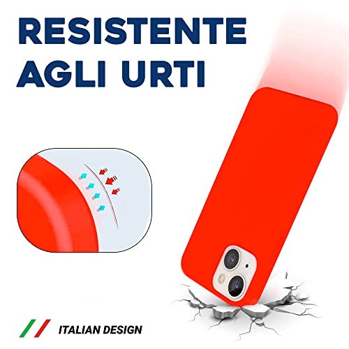Phonix Cover per iPhone 13 Silicone Liquido Rosso Italia - Custodia per iPhone 13 Compatibile con Ricarica Wireless - Case Morbido Antiurto con Bordi Rialzati