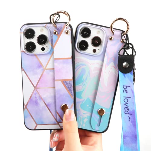 Phoona 2 Pezzi Cinturino Cover con Cordino per Xiaomi Redmi Note 10 5G / 10T 5G 6,5" Custodia Supporto Cellulare Collana Corda Tracolla Morbido TPU Silicone Antiurto Case Protettiva Modello Marmo