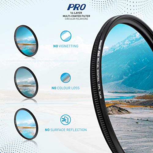 【POLARIZZAZIONE CIRCOLARE CPL】Filtra semplicemente i riflessi indesiderati di superfici non metalliche come l'acqua e il vetro, oltre a riflettere l'umidità e l'inquinamento atmosferico. Ruotare il filtro per ottenere la giusta quantità di filtrazione necessaria. Il risultato sono cieli più azzurri, foglie più verdi, riflessi ridotti o eliminati e maggiore chiarezza nell'immagine finale.